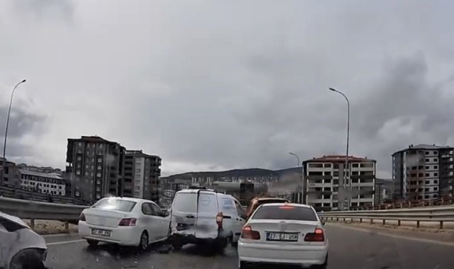Kaza, Şehitkamil ilçesi Alpaslan Mahallesi Beykent Kavşağı'nda meydana geldi. İddiaya göre, yoğun trafiğin olduğu yolda kontrolden çıkan hafif ticari araç, hızla savrularak önündeki 4 araca çarptı. Kazada yaralanan olmazken araçlarda hasar meydana geldi. Kaza anları ise arkadaki başka bir aracın kamerasına yansıdı. Görüntüde, savrulan hafif ticari aracın önündeki araçlara çarpma anları yer aldı.