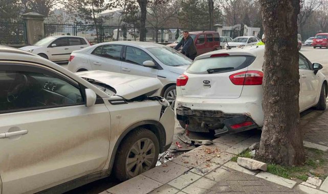 Kontrolden çıkan araç, park halindeki 2 otomobile çarptı