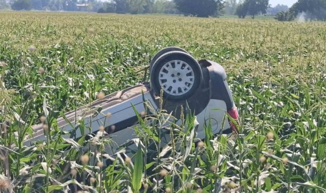 Kontrolden çıkan araç takla atıp tarlaya uçtu: 1 yaralı