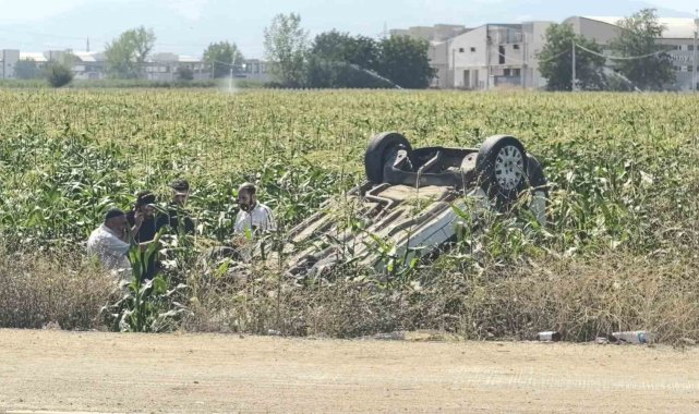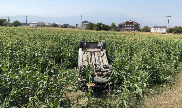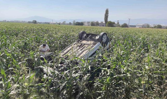 Kaza saat 12.30 sıralarında Alanyurt ile Akhisar Mahallesini bağlayan beton yolda meydana geldi. Akhisar mahallesine seyreden Servet A.(40) yönetimindeki 16 AFE 491 plakalı hafif ticari araç, virajda sürücüsünün kontrolünden çıkarak mısır tarlasına takla atarak ters durdu. İhbarla kaza yerine 112 ve polis ekipleri sevk edildi. Sürücü, isteği üzerine sağlık ekiplerince ayakta tedavi edildi.