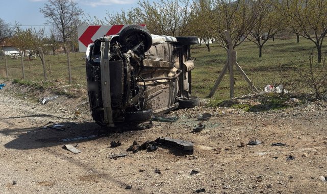 Kontrolden çıkan araç, toprak yığınına çaparak savruldu