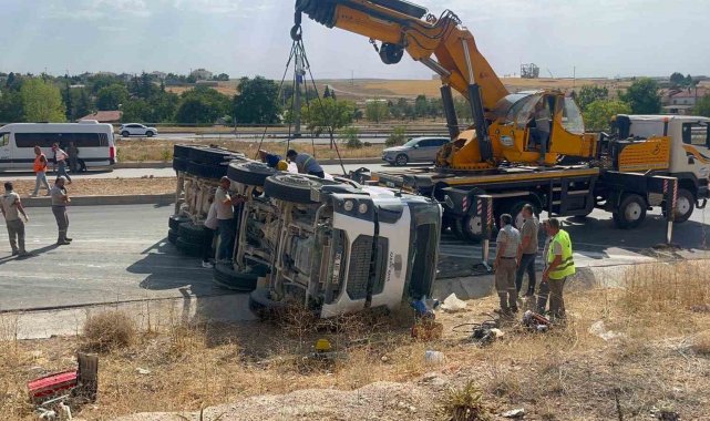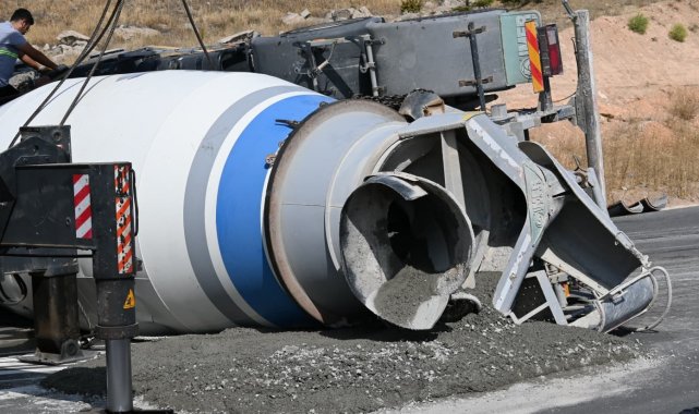 Kontrolden çıkan beton mikseri refüje devrildi: 1 yaralı