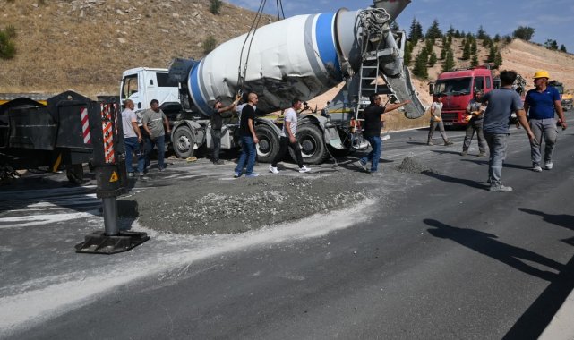Öte yandan, kaza sonrası yan yatan beton mikserinin içindeki beton asfaltın aktığı görüldü. Mikseri kaldırmak amacıyla ağır işlerde kullanılan bir vinç bölgeye sevk edildi. Kazadan dolayı kısmen kapanan sokakta uzun araç kuyrukları oluştu. Yan yatan beton mikseri, vinç vasıtasıyla olduğu yerden kaldırıldı.