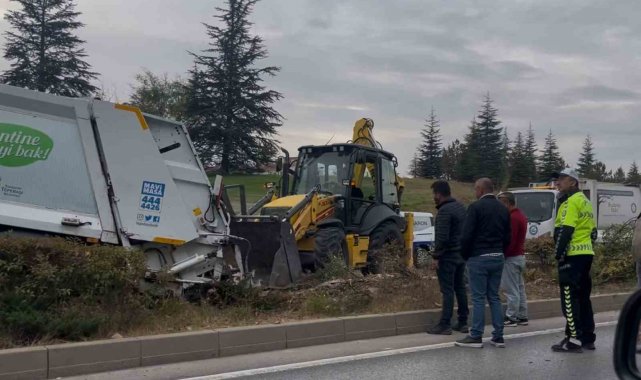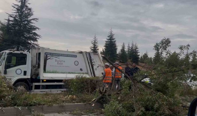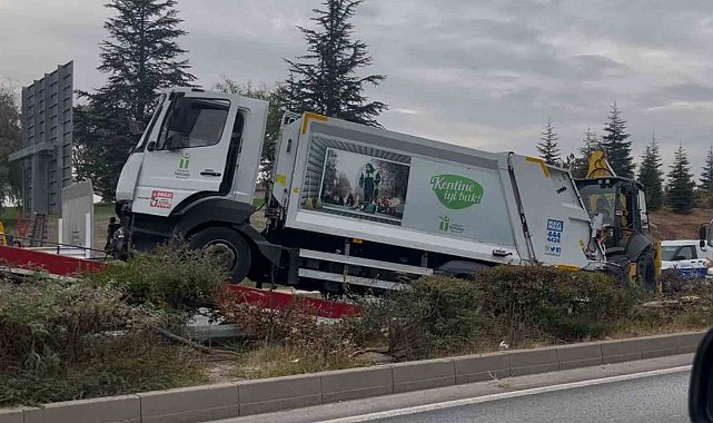 Çöp kamyonu ağaçları yatırarak refüje çıktı