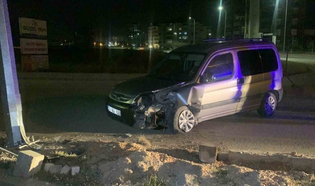 Kontrolden çıkan hafif ticari araç, aydınlatma direğine çarptı