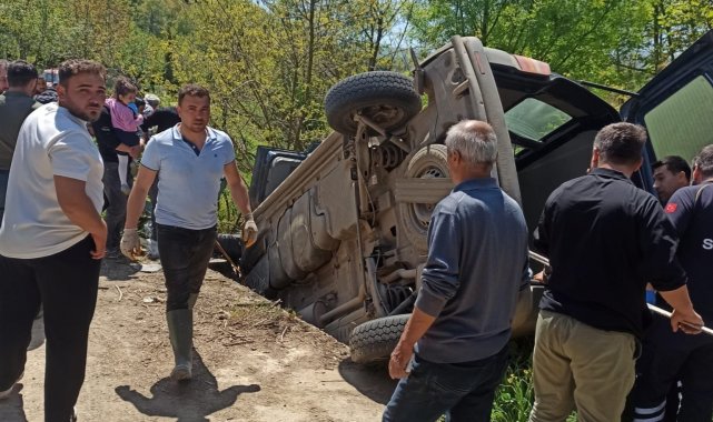 Kontrolden çıkan hafif ticari araç devrildi: 2 yaralı