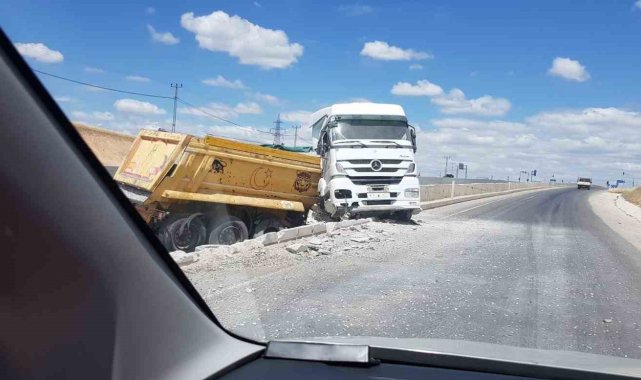 Kontrolden çıkan hafriyat kamyonu yön tabelasına çarptı: 1 yaralı