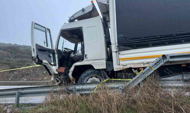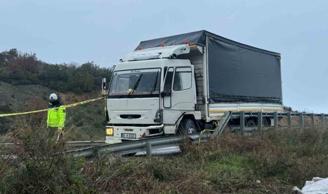 Kontrolden çıkan kamyon bariyere çarptı, uçurumdan uçtuğu zanneden sürücü araçtan atladı