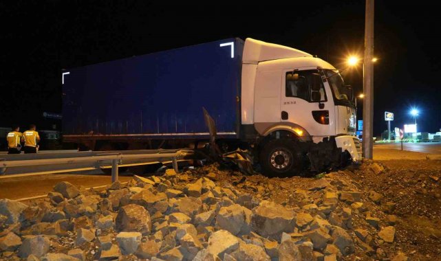 Kırıkkale'de kontrolden çıkan kamyonun orta refüje çıktığı kazada sürücü yara almadan kurtuldu.