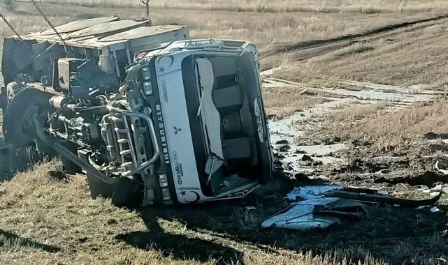 Kontrolden çıkan kamyon şarampole devrilerek takla attı: 1 yaralı