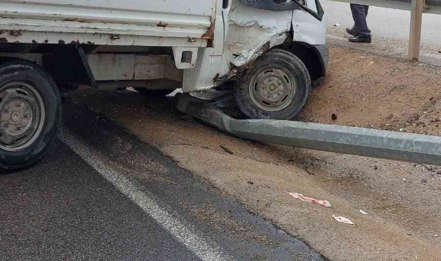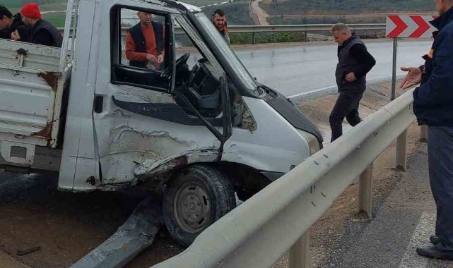 Bursa'nın İnegöl ilçesinde meydana gelen kazada kontrolden çıkan kamyonet direğe ve bariyerlere çarptı; sürücüsü yaralandı.