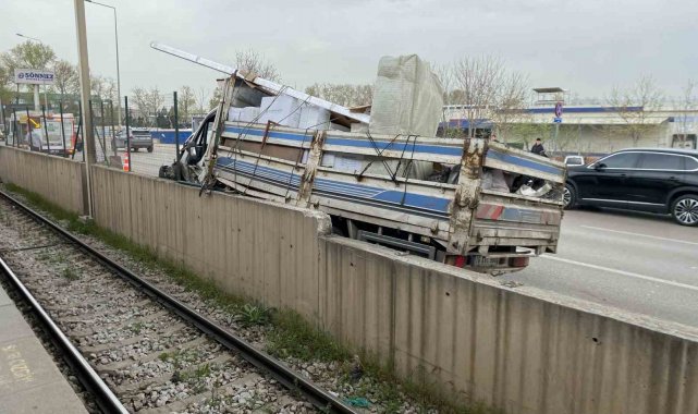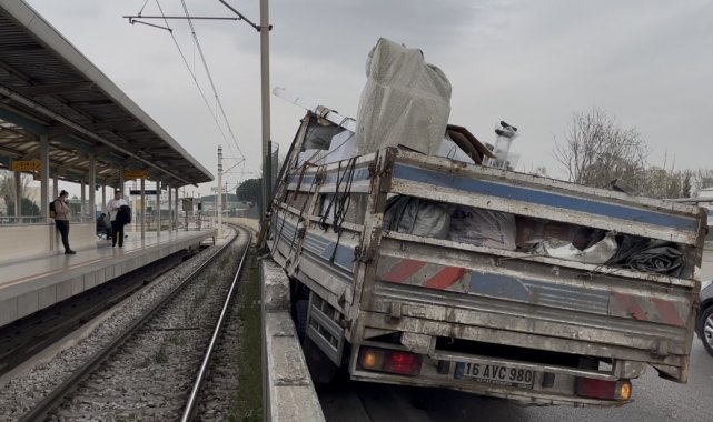 Bursa'da sürücüsünün kontrolünden çıkan kamyonet metronun bariyerlerine çarptı. Kazada sürücü Mehmet A. yara almadan kurtulurken, metro seferlerinde kısa süreli aksama yaşandı.