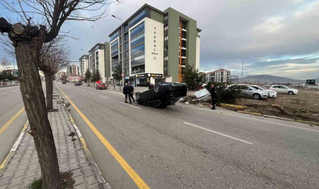 Isparta'da kontrolden çıkan lüks otomobil ağaca çarpıp ters döndü. Sürücü hafif yaralandı.