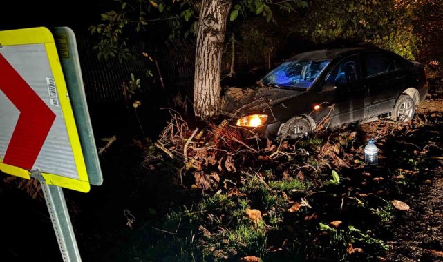 Kontrolden çıkan otomobil ağaca çarptı: 3 kişi yaralandı