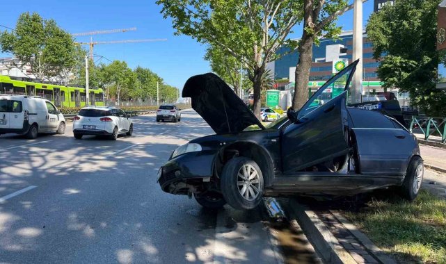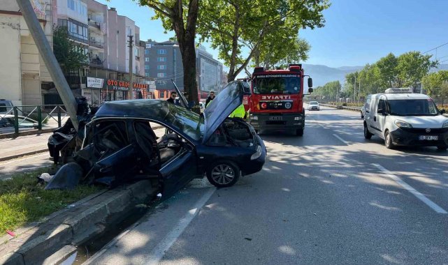 Kontrolden çıkan otomobil aydınlatma direğine çarptı: 1'i ağır 2 yaralı