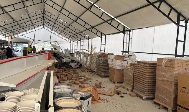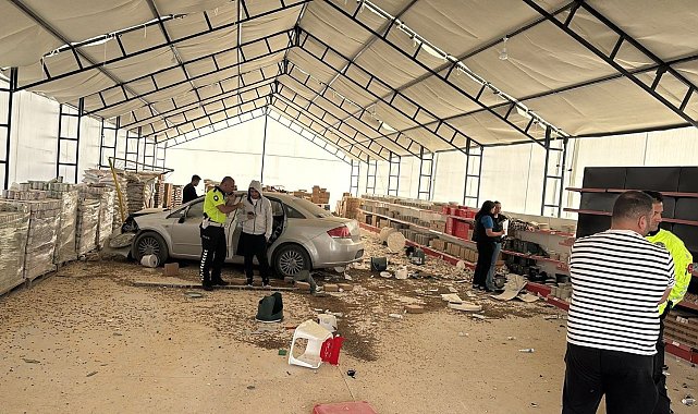 Bilecik'te kontrolden çıkan otomobil bir iş yerine girerken olayda faciadan dönüldü.