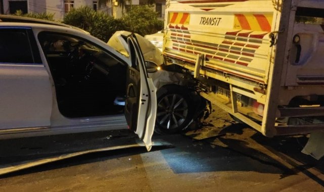 Kontrolden çıkan otomobil, kamyonete çarptı: 2 yaralı