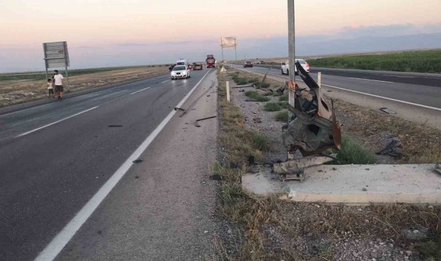 Konya'nın Karapınar ilçesinde kontrolden çıkan otomobilin trafik levhasına çarparak karşı şeride geçtiği kazada 4 kişi yaralandı.
