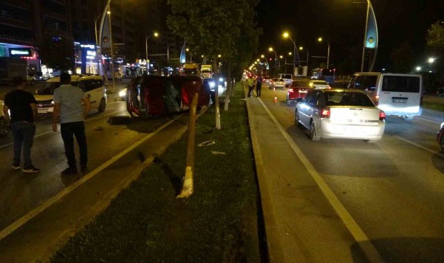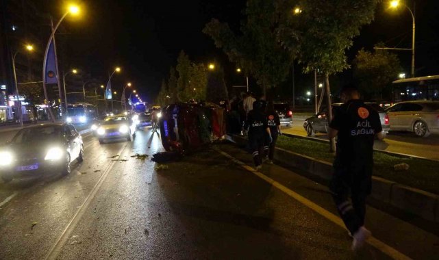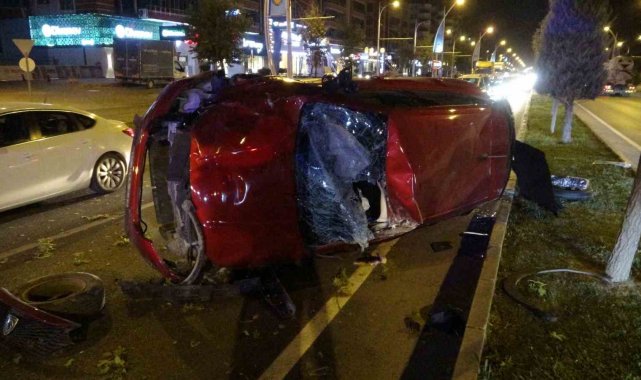 Kontrolden çıkan otomobil önce araca sonra refüje çarpıp karşı şeride geçti: 2 yaralı