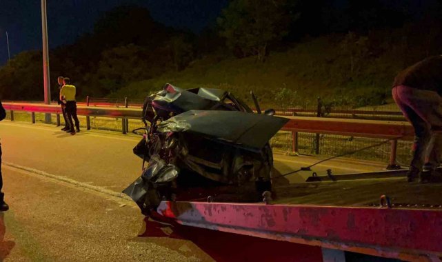 Kontrolden çıkan otomobil önce tıra sonra bariyerlere çarptı: 1 ağır yaralı