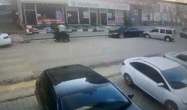 Yaşanan kaza anı, çevredeki bir iş yerinin güvenlik kamerasına saniye saniye yansıdı.