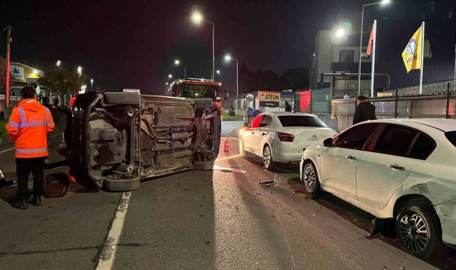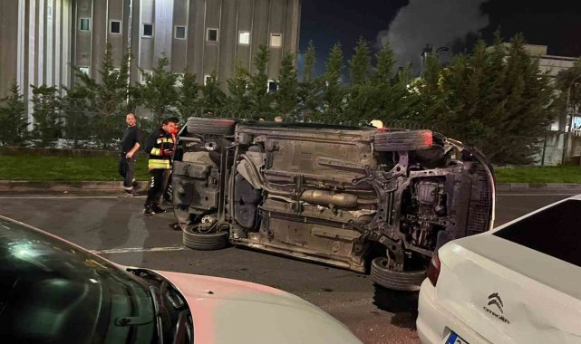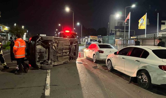 Kontrolden çıkan otomobil park halindeki araçlara çarpıp yan yattı