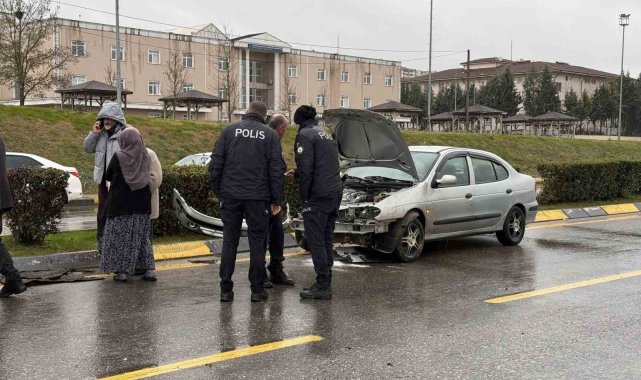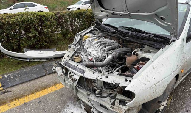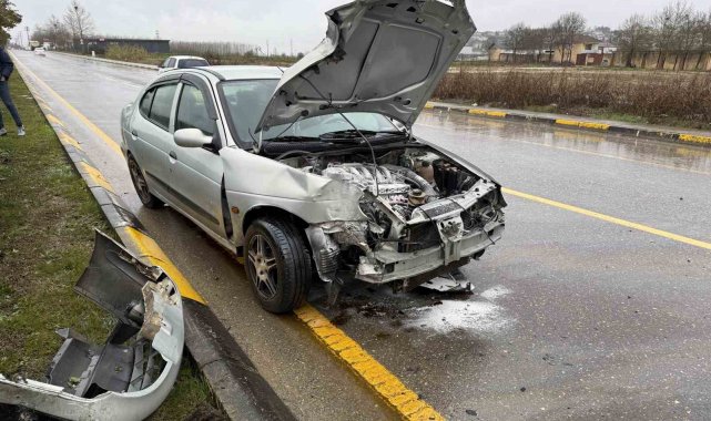 Sakarya'nın Adapazarı ilçesinde yağmur sebebiyle kontrolden çıkan otomobil, refüje çarpması neticesine motor kısmında yangın çıktı. Meydana gelen kazada, yaralanan olmazken araçta maddi hasar oluştu.