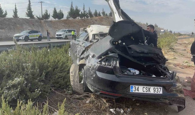 Gaziantep'te kontrolden çıkan otomobil bariyerlere çarptıktan sonra taklalar artarak refüje uçtu. Kazada 1 kişi hayatını kaybetti, 2'si ağır 4 kişi yaralandı.