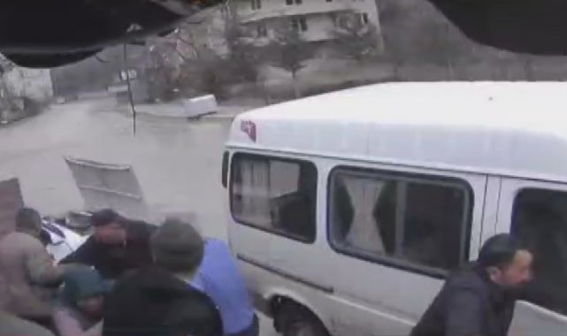 Kaza, Mehmet Akif Ersoy Mahallesi Sepetçioğlu Sokak'ta meydana geldi. Edinilen bilgiye göre, kendisini ziyarete gelen misafirlerini uğurlamak için evinin önüne çıkan vatandaşlar, minibüsün yanında sohbet ettikleri sırada sürücüsü ve plakası henüz belirlenemeyen FIAT-TOFAŞ marka otomobil virajı alamayarak kalabalığın üzerine doğru sürüklendi. Kontrolden çıkan otomobil önce evin önündeki ahşap direğe çarptı, ardından ters dönerek demir kapıyı kırıp bahçeye girdi. Kazada direk devrilirken, evin önünde bulunan vatandaşlar ise son anda kurtuldu. Facianın eşiğinden dönülen kaza anı, saniye saniye güvenlik kamerasına yansıdı. Sürücüsünün yaralanmadığı otomobilde ise büyük çapta maddi hasar oluştu.