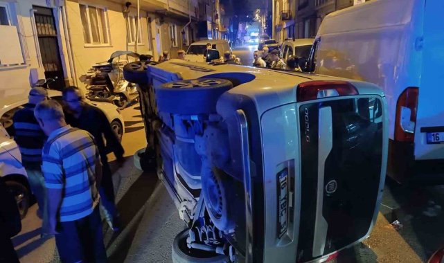 Kaza, Osmangazi ilçesinde saat 20.30 sıralarında Selamet Mahallesi 1'inci Ordulu Sokak'ta meydana geldi. M.A. idaresindeki 16 YBC 51 plakalı hafif ticari araç, sürücüsünün direksiyon hakimiyetini kaybetmesi sonucu park halindeki otomobile çarptı. Çarpmanın etkisiyle araç yan dönerken, içerde bulunan yolculardan biri yaralandı. Kazanın ardından sürücü ile birlikte araçta bulunan 4 kişi çevredeki vatandaşların yardımıyla dışarı çıkarıldı. İhbar üzerine olay yerine sağlık, itfaiye ve polis ekipleri sevk edildi. Sağlık ekipleri yaralıya olay yerinde ayakta tedavi uyguladı.