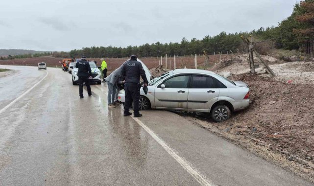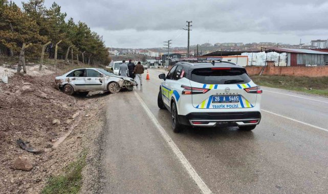 Eskişehir'de kontrolden çıkan otomobilin yol kenarına savrulması sonucu gerçekleşen trafik kazasında 3 kişi yaralandı. Kaza anı güvenlik kamerasına yansıdı.
