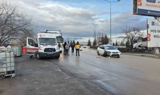 Eskişehir'de kayganlaşan yolda kontrolden çıkan otomobil park halindeki tıra çarptı. Çarpmanın etkisiyle tırın delinen deposu, çamurla kaplanarak mazot akışı kesildi.