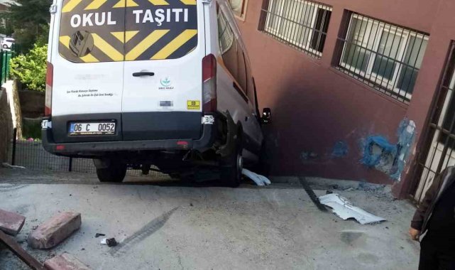 Ankara'da kontrolden çıkan servis aracı yol kenarındaki apartmanın merdivenlerine devrildi. Kazada can kaybı veya yaralanma yaşanmadı.