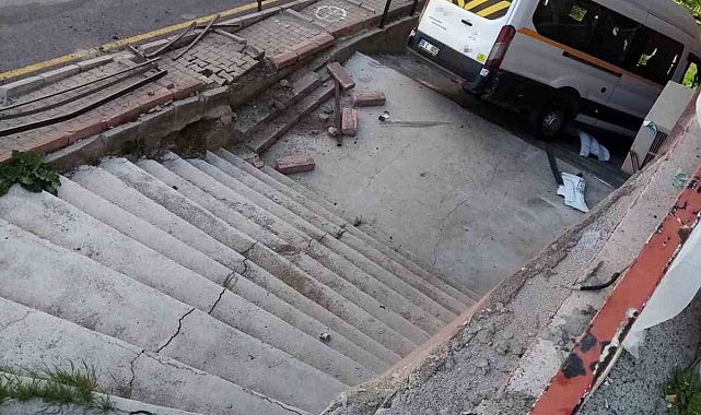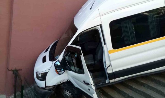 Olay, dün öğlen saatlerinde Mamak'ta meydana geldi. Alınan bilgilere göre, virajı dönmek için manevra yapan servis sürücüsü aracının kontrolünü kaybetti. Savrulan araç yol kenarındaki apartmanın merdivenlerine devrilerek durabildi. İlk anları kamera kaydına da yansıyan kazada can kaybı veya yaralanma yaşanmazken, apartmanda ve servis aracında maddi hasar oluştu.