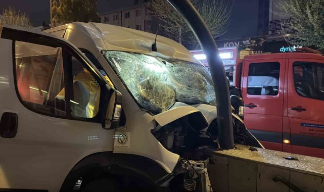 Kontrolden çıkan servis minibüsü alt geçidin duvarına çarptı