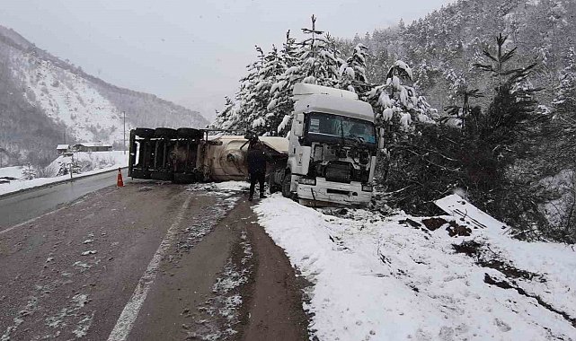 Kaza, Mudurnu ilçesi Taşkesti beldesi yolunda meydana geldi. Edinilen bilgiye göre, yol üzerinde seyreden Serkan Erol yönetimindeki 06 AR 865 plakalı soda yüklü tır, kar yağışı sebebiyle kontrolden çıktı. Sürücüsünün direksiyon hakimiyetini kaybettiği tır, şarampole devrildi. Kaza nedeniyle tır ve dorsesi yol kenarına savruldu. Durum 112 Acil Çağrı Merkezi'ne bildirildi. İhbar üzerine bölgeye sağlık, jandarma ve karayolları ekipleri sevk edildi. Kaza sebebiyle trafik tek şeritten kontrollü olarak sağlandı. Tırın yoldan kaldırılması için çalışma başlatıldı.