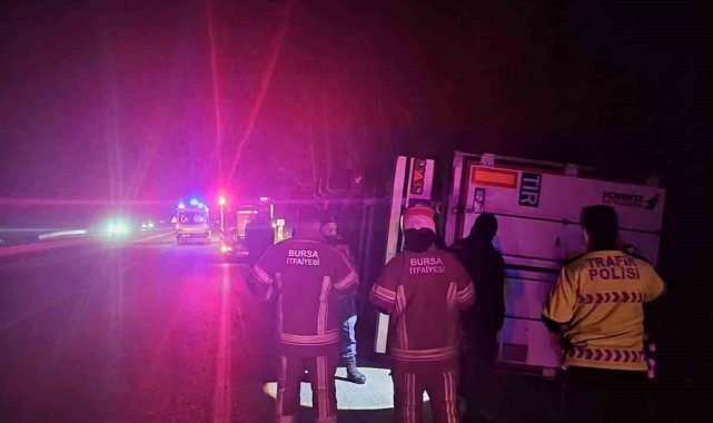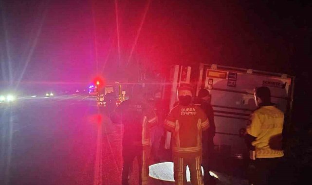 Kaza saat 05.30 sıralarında Bursa-Ankara karayolu üzeri İnegöl'ün Mezit-5 mevkiinde meydana geldi. Bozüyük istikametinden İnegöl'e seyir halinde olan Sürücü Saffet S.(33) yönetimindeki 35 CYB 918 plakalı patates yüklü TIR, sürücüsünün kontrolünden çıkarak yolun kenarına devrildi. Kaza yerine 112 jandarma ve itfaiye arama kurtarma ekipleri sevk edildi. Ekipler kabinde mahsur kalan sürücüyü kurtardılar. Kazayı burnu bile kanamadan atlatan şoför, hastaneyi gitmeyi reddedince Ambulansta tedavi edildi.