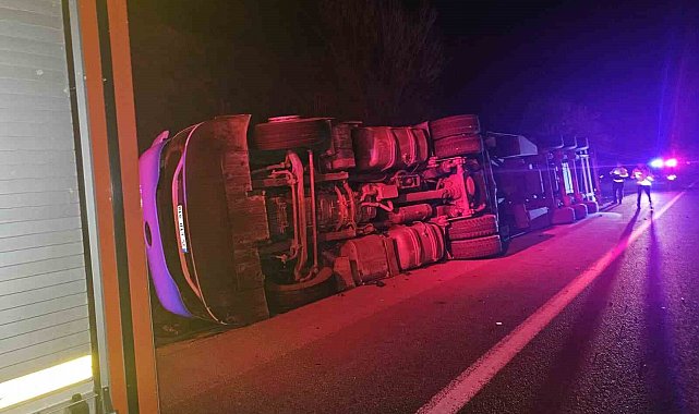 Kontrolden çıkan tır devrildi, şans eseri yaralanan olmadı