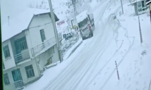 Öte yandan tırın eve çarpma anı, güvenlik kamerası tarafından görüntülendi. Görüntülerde tırın hızla gelerek evin duvarına çarptığı anlar yer aldı.
