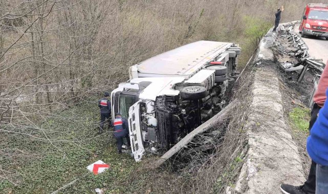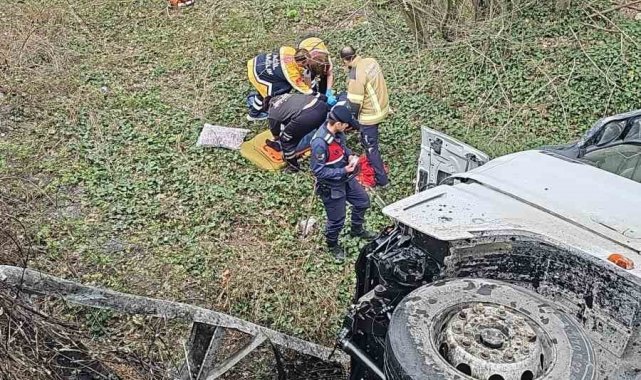 Kontrolden çıkan tır şarampole yuvarlandı: 1 yaralı