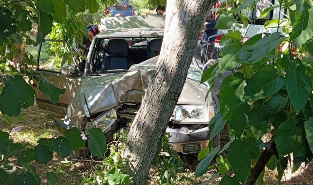 Sakarya'nın Akyazı ilçesinde kontrolden çıkan Tofaş otomobil ağaca çarptı. Otomobilin hurdaya döndüğü kazada, karı-koca çift yaralandı.