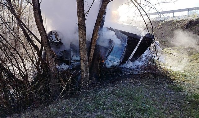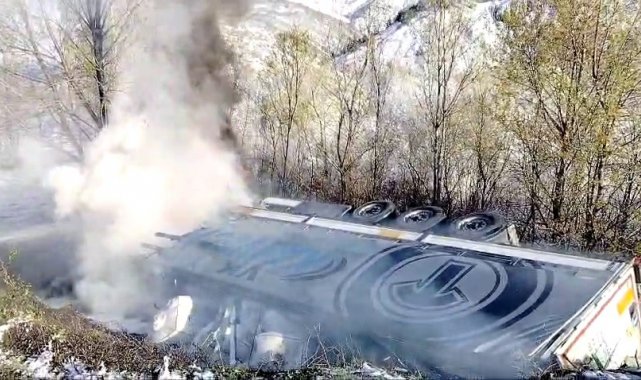 Kontrolden çıkıp devrilen tır alev aldı, sürücü hayatını kaybetti