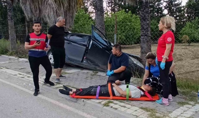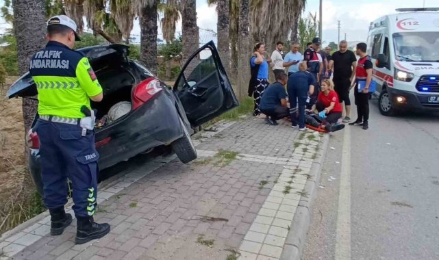 Manavgat'ta 14 yaşındaki çocuğun kullandığı otomobil yolun karşı şeride geçerek bahçedeki palmiyeye çarptı. Kazada araçta bulunan 2 kişi yaralanırken, yaralılara yardım etmeye çalışan bir vatandaş bel fıtığı nedeniyle rahatsızlanarak hastaneye kaldırıldı.
