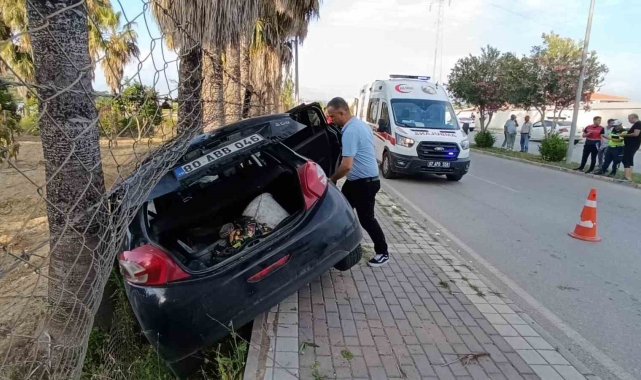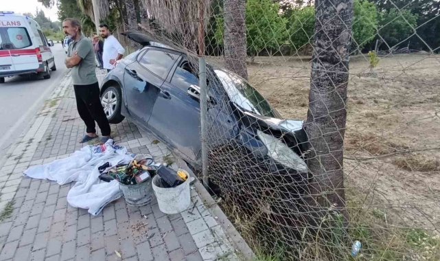 Kontrolden çıktı karşı şeride geçip palmiyeye çarptı: 2 yaralı