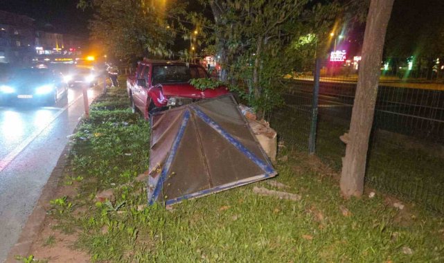 Bursa'da kontrolden çıkan kamyonet refüjdeki duvara çarptı, sürücü hafif yaralandı.