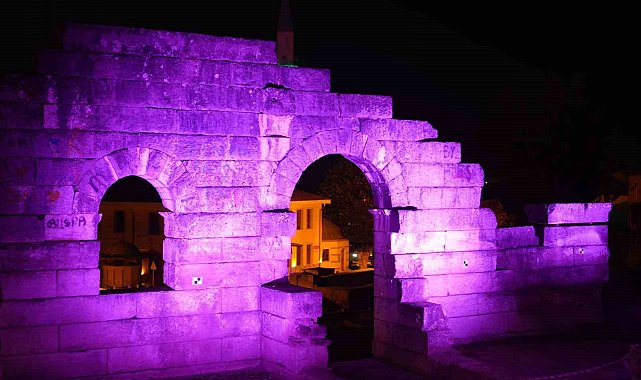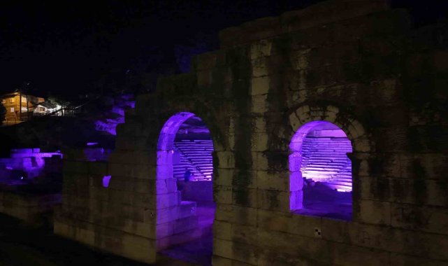 9 Eylül tarihleri arasında kutlanan Halk Sağlığı Haftası dolayısıyla düzenlenen etkinlik kapsamında Konuralp Antik Kenti'nde mor ışıklar yandı.