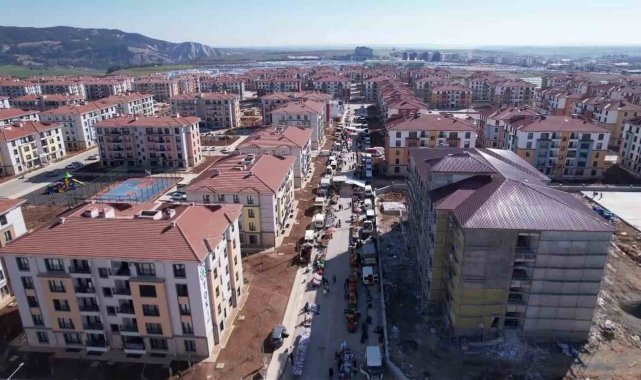 Binlerce kişiye yuva olan Adıyaman'ın Örenli Mahallesi'ndeki kalıcı deprem konutlarındaki insan yoğunluğu artınca semt pazarı kuruldu.