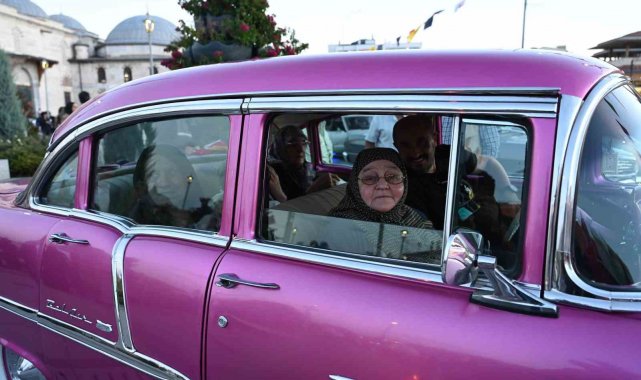Konya Büyükşehir'den huzurevindeki büyüklere klasik araçlar ve açık hava sinemasıyla nostaljik sürpriz