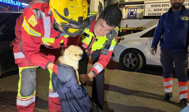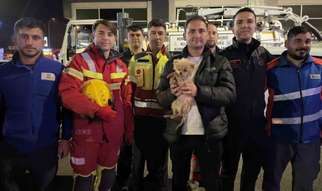 Merkez Karatay ilçesi Fevzi Çakmak Mahallesi Galericiler Sitesi'nde bir galerici esnafının kaybolan "Sütlaç" isimli köpeğinin kanalizasyon borusunda mahsur kaldığı tespit edildi. Esnafın ihbarı üzerine olay yerine Konya Büyükşehir Belediyesi İtfaiye Dairesi Başkanlığı ile KOSKİ Genel Müdürlüğü ekipleri sevk edildi. Adrese intikal eden ekipler, ilk olarak 20 metre uzunluğunda yılan kamerayla köpeğin bulunduğu yeri tespit ettikten sonra kurtarma çalışması başlattı. Büyükşehir Belediyesi ekipleri, dar ve ulaşılması güç alandaki köpeğe zarar vermeden müdahale etmek için büyük bir titizlikle çalıştı. 6 saat süren yoğun gayretin ardından minik köpek mahsur kaldığı kanalizasyon borusundan çıkarılarak özgürlüğüne kavuşturuldu.