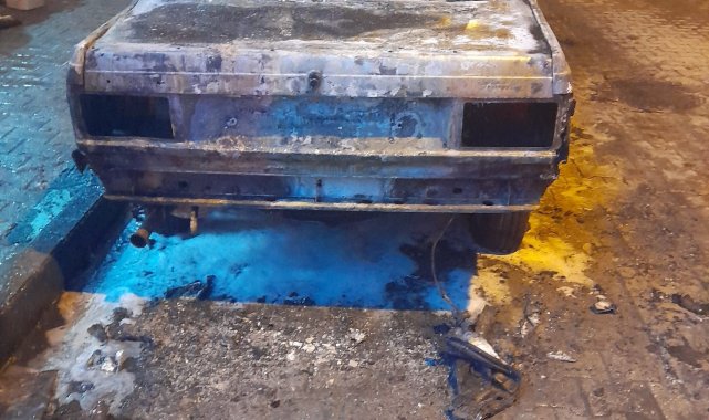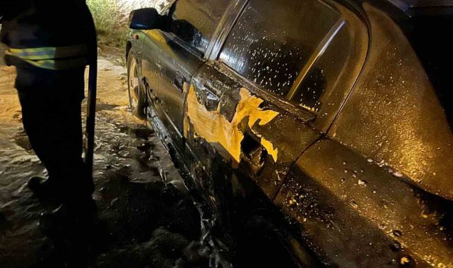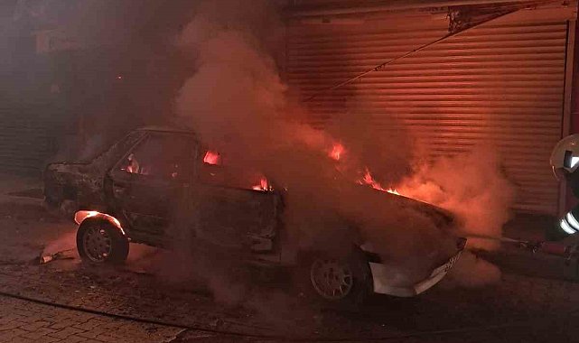 Güvenlik kamerası görüntüsünde şüphelinin bir aracın yanına geldiği kısa süre sonra ayrıldığı ve araçtan alevlerin yükseldiği görülüyor.
